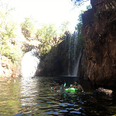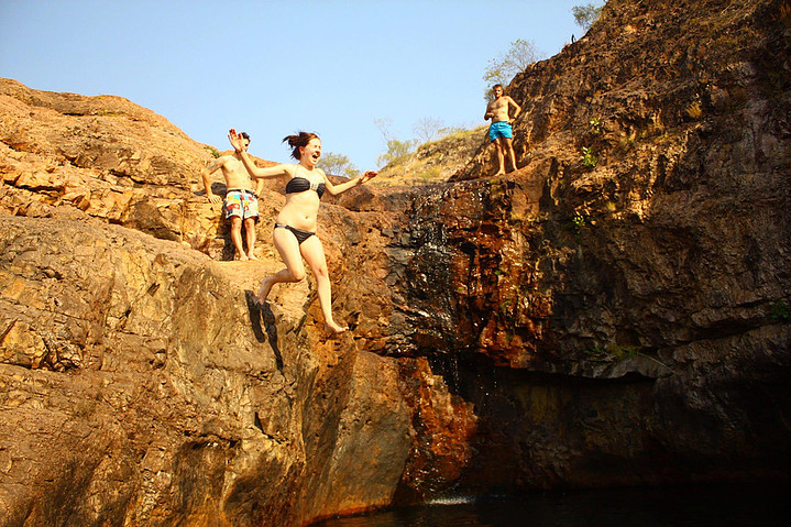 The 4WD tracks in Litchfield National Park that give you access to some of the more secluded spots. You’ll find that, in the dry season, crossing water is the key to finding an uncrowded spot and there are some stunning spots accessible after the rains have gone. The Southern Access Track to Surprise Falls is a stunning drive crossing the Reynolds River (about 5 times) and Surprise is a great spot to swim and jump in. Tracks are well marked and there’s plenty to see and do on the way if the kids get bored or need a break from their booster seat! If you have some 4×4 experience it is well worth it, but take it easy and don’t cross water if you’re not sure you can get through. Wait and watch someone first if you’re not convinced.